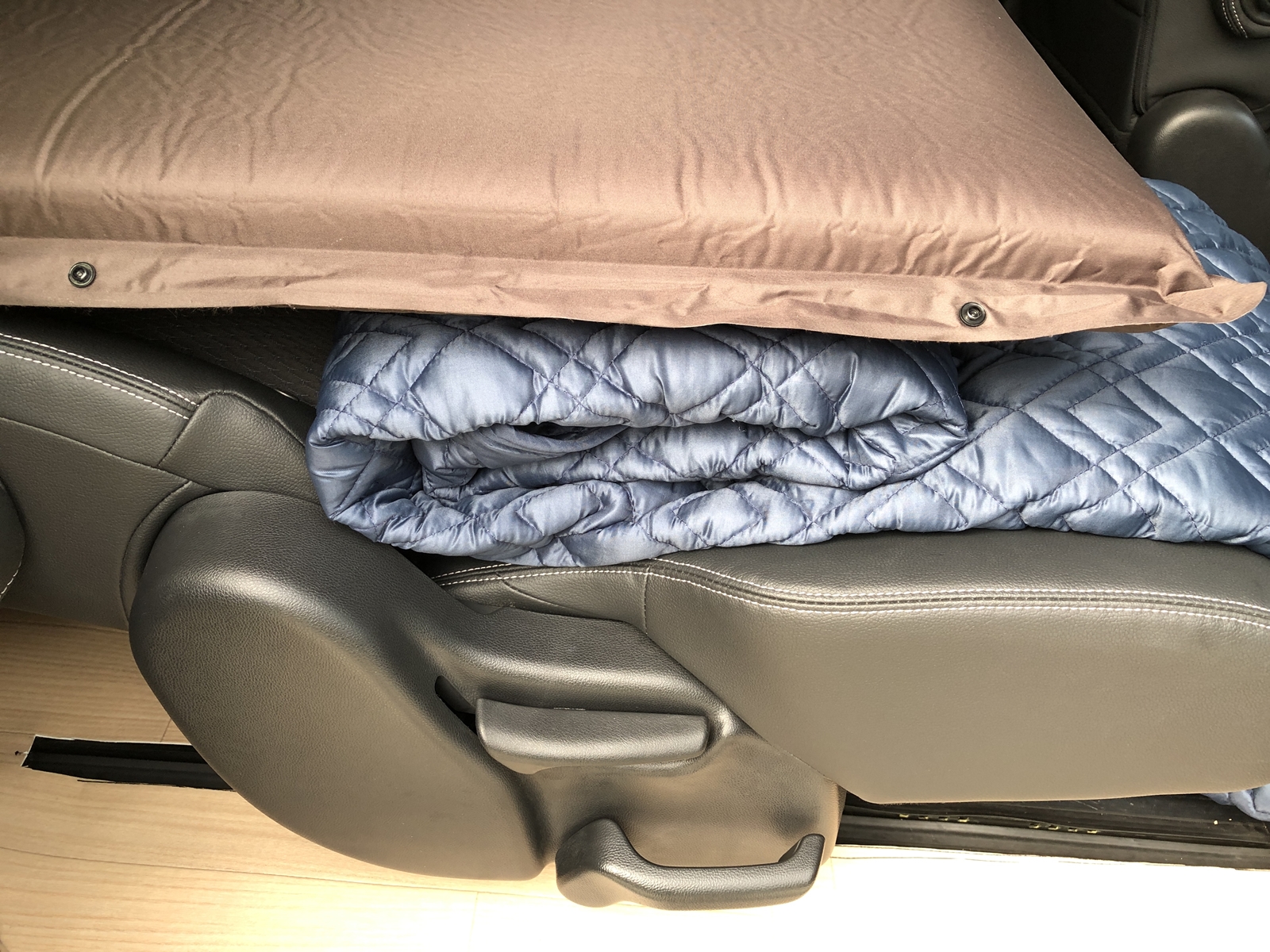 インフレーターマットがあれば、家にある寝具を持ち込めばとりあえず寝ることができます。これから、快適な車中泊を目指して、一つずつ問題を解決していこうと思います。