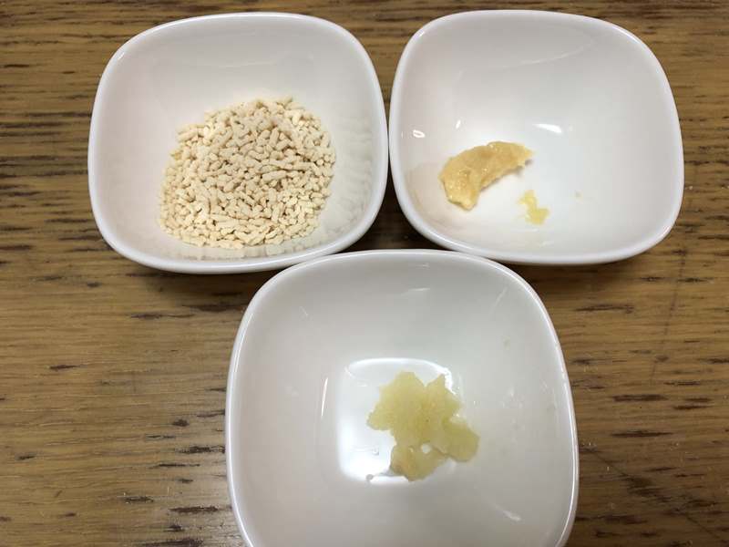 (炊きこみ用スープ)鶏がらスープの素(顆粒状)大さじ3 おろししょうが 大さじ1/2 おろしにんにく大さじ1/2 青ねぎ適宜 水米2合分