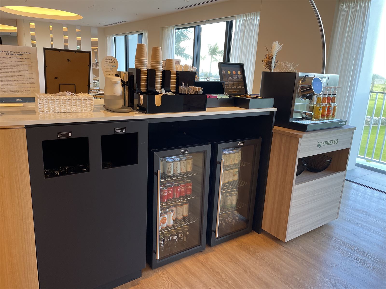 宿泊者専用ラウンジもあります。飲み物などが無料で利用できます。