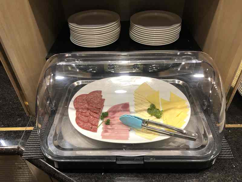 ラウンジ内はそれほど広くはありませんが、食べるものも、飲み物も一通り揃っていました。朝食をまだ食べていなかったので、サラダやハムなどを持ってきて食べました。