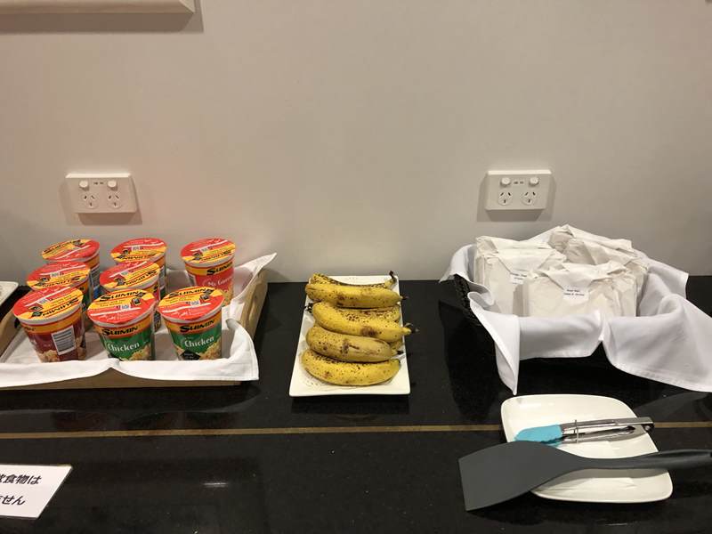 ラウンジ内は、2人の女性の方がいて、受付の他、食器の片づけや食べ物の補給をしていました。
