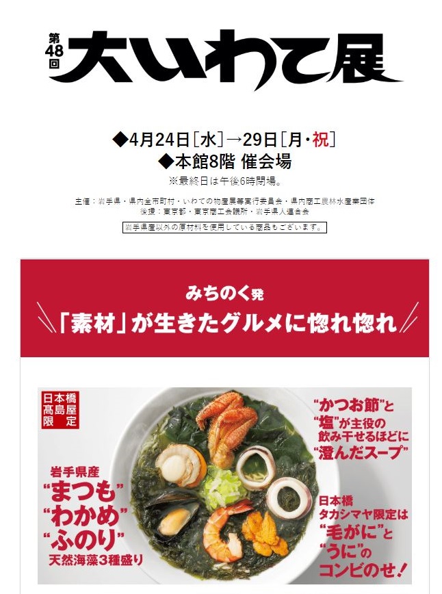 日本橋店 4/27(土)~4/29(月) 大いわて店 本館8階・催会場