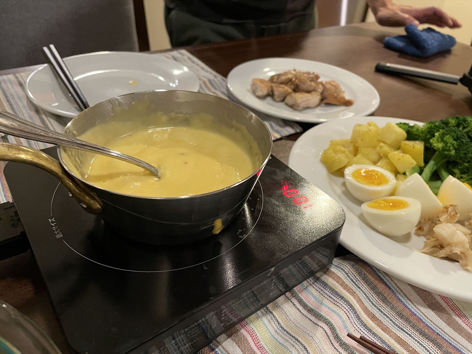 自炊のためには日本から調味料や包丁などのキッチングッツを持ち込みます。それなりに準備も必要ですが、快適に食事ができています。