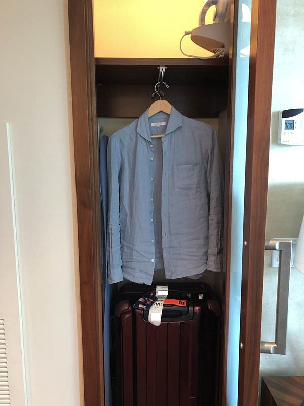 寝室は、ベット2つでいっぱいです。クローゼットは、奥行きのないタイプで、スーツケースをしまう場所がありません。