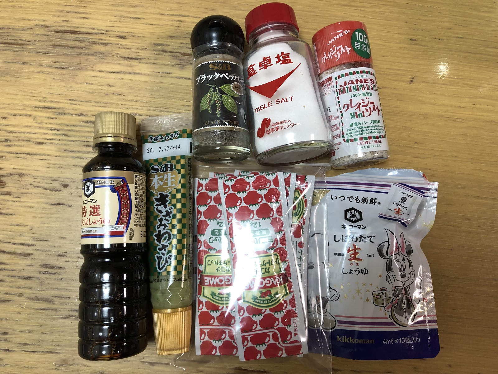 今回持って行った調味料は、液体といっても醤油とバルサミコぐらいです。これに帰りはレモン汁が加わりました。