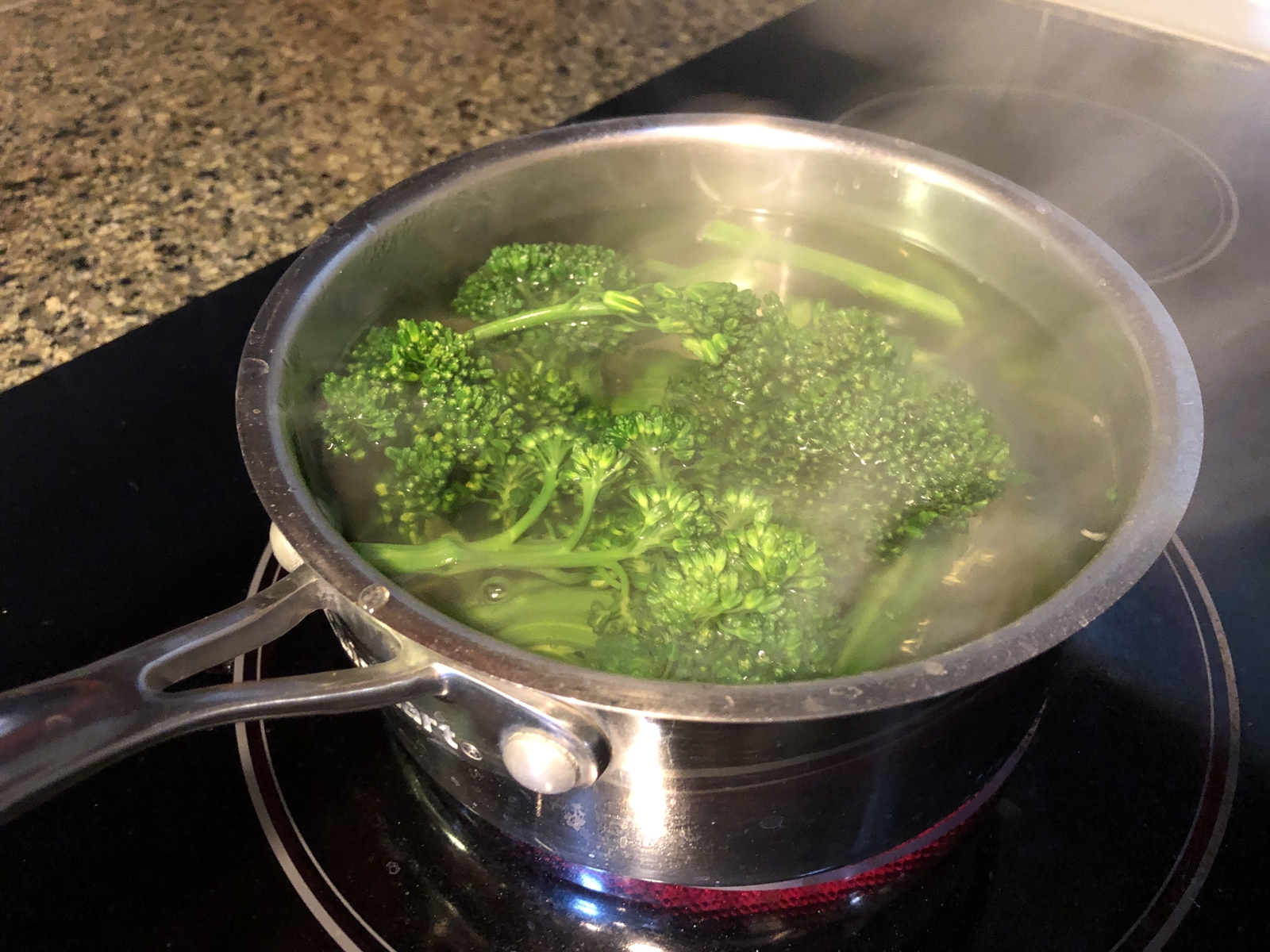 ⑥鶏もも肉を焼いている間に、ブロッコリーを茹ででおきます。