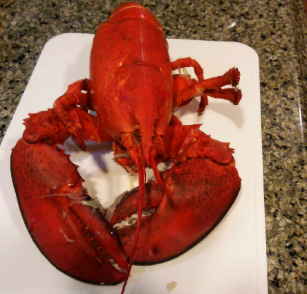 調理前のロブスターとコントローラーと並べてみました。ハサミの大きさが分かると思うのですが。大きいでしょう!