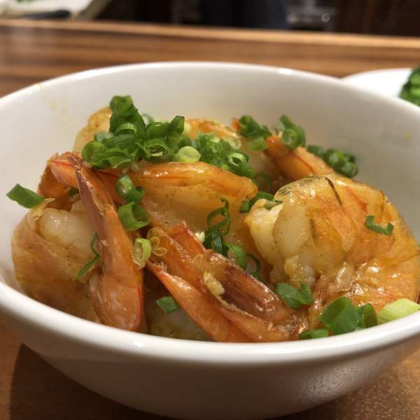 ガーリックシュリンプ、ハンバーグ、サラダ、トースト、ビール