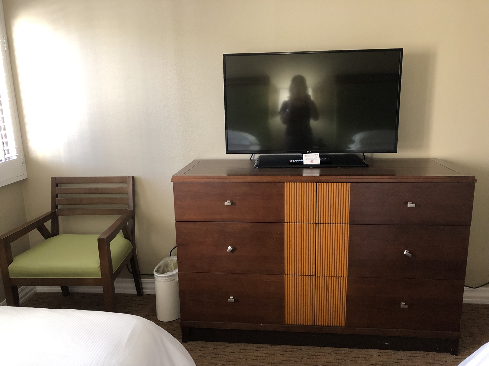 テレビまでの距離感をみてください。かなり広くてゆったりしています。今回のお部屋は9階でした。多分もっと上層階であれば、ビューや音の問題は気にならなかったかもしれません。