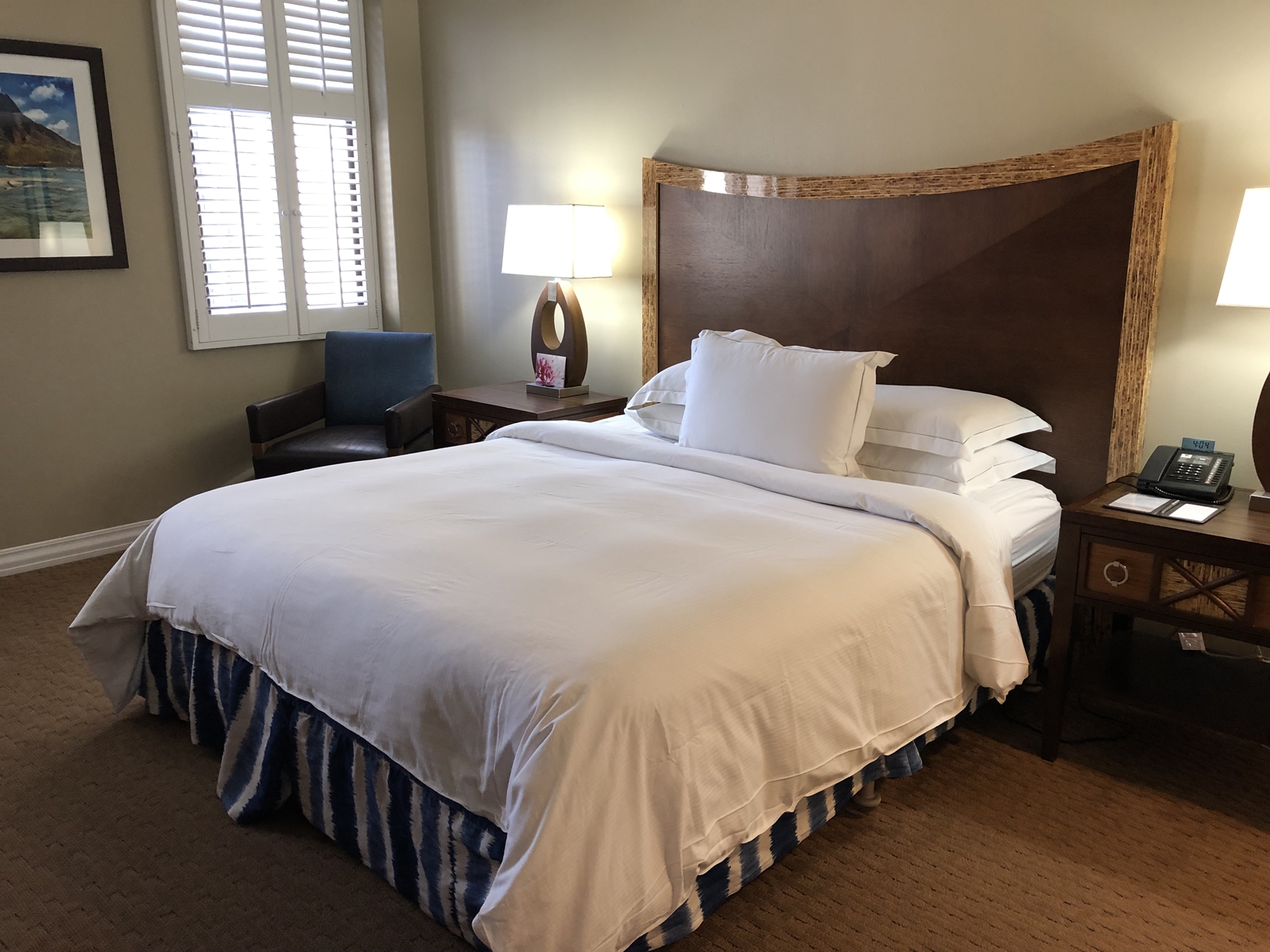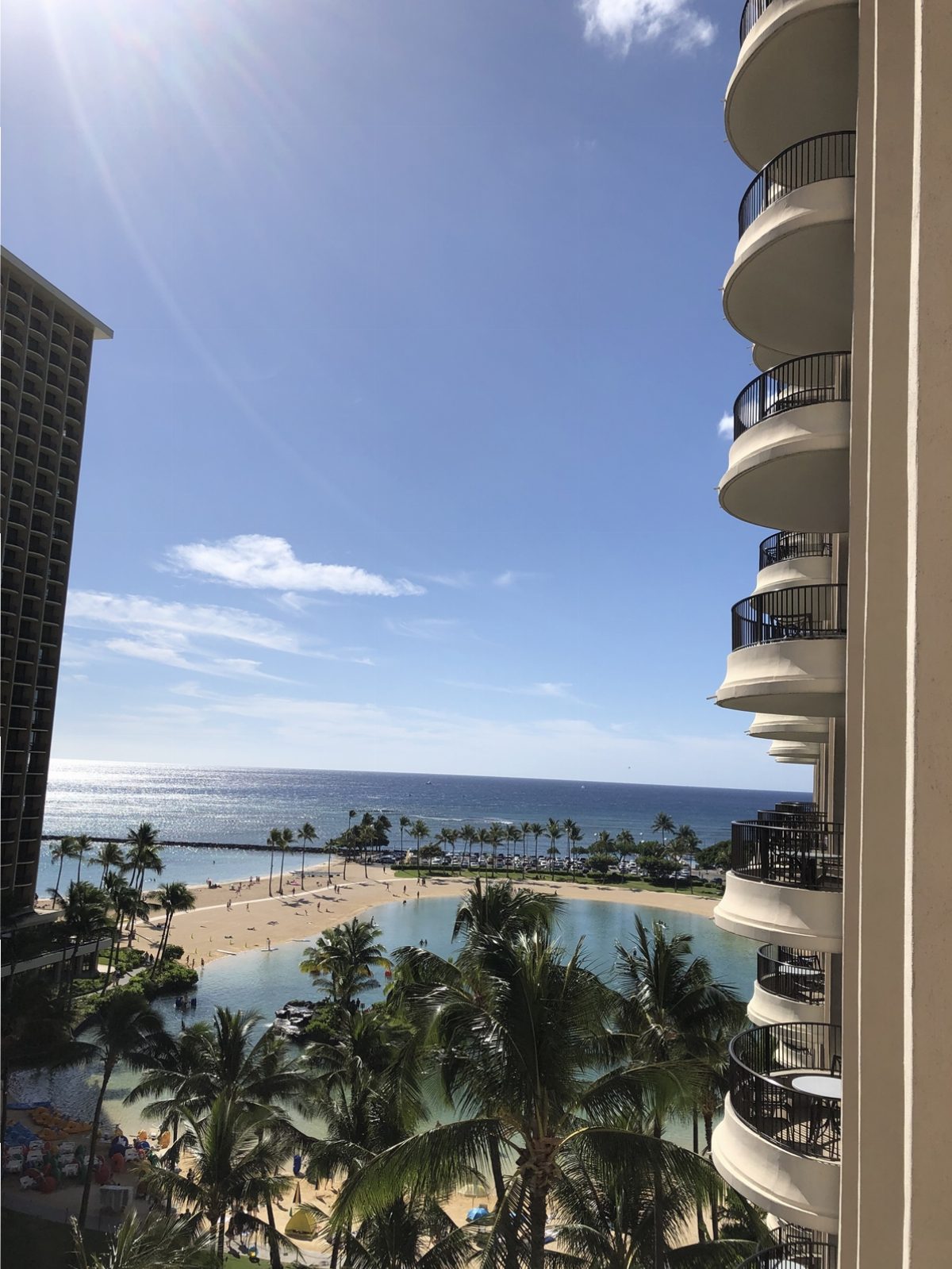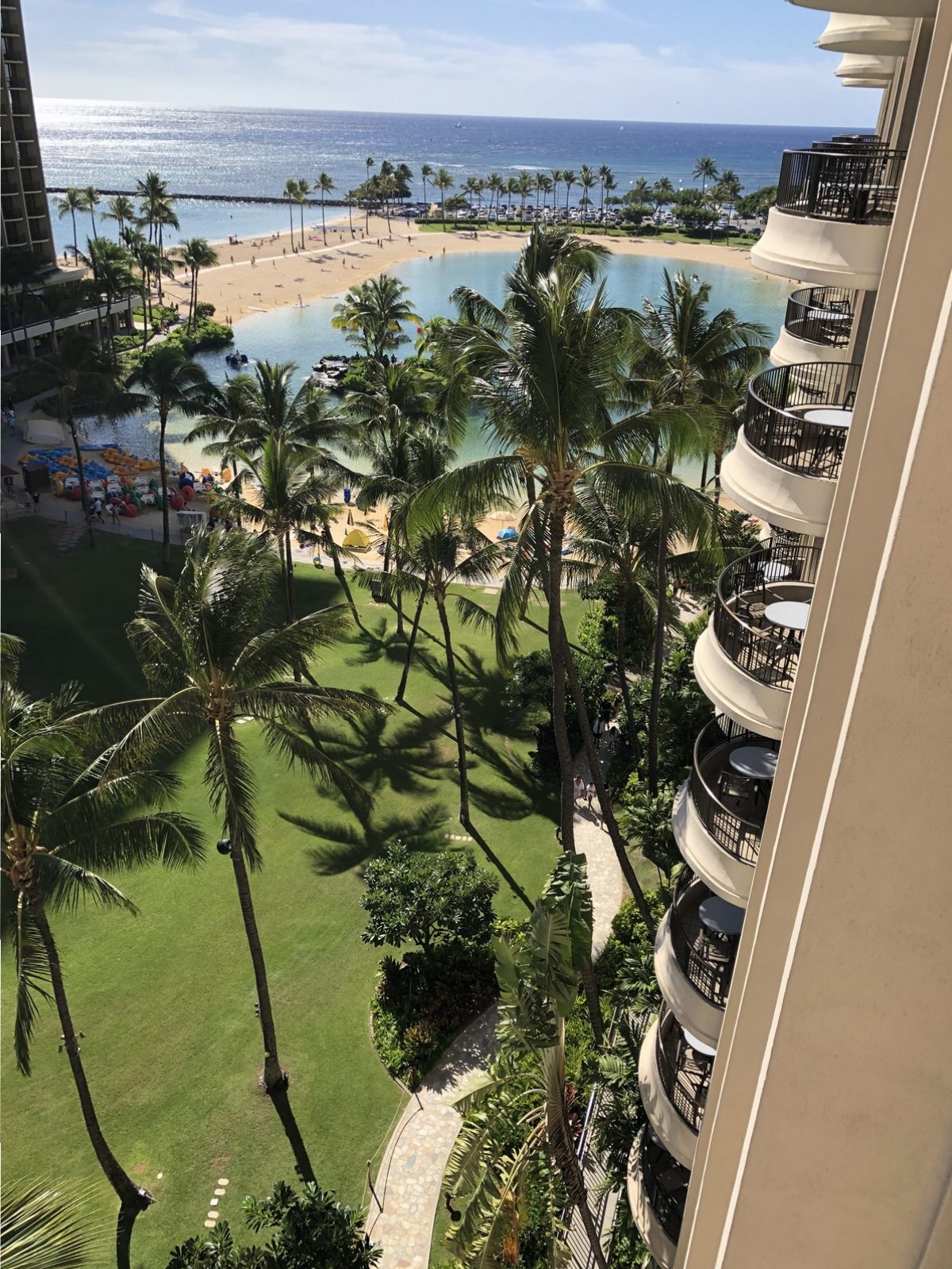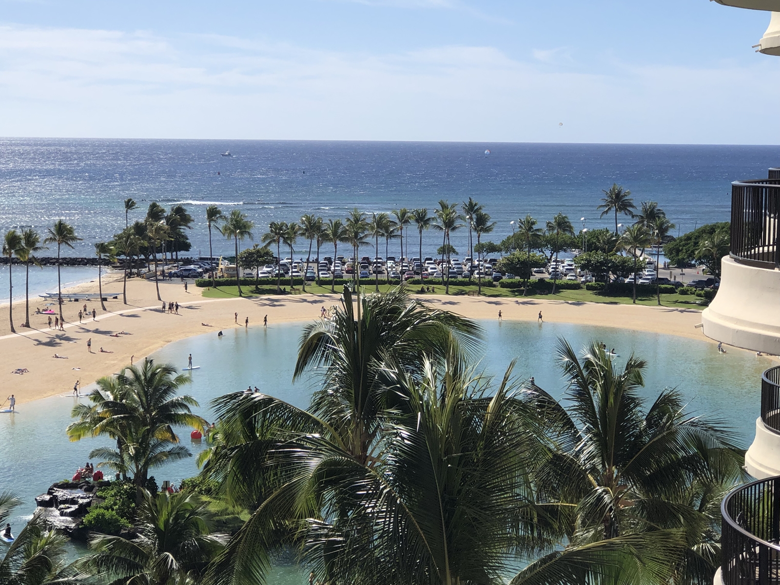 ワイキキアンやアイランダーに比べ、内装はやや古めで、細かい所には埃が積もっていたのも気になりました。部屋自体は広くて、居心地は悪くありませんでした。また、正面は木しか見えませんが、ラナイにでると、ラグーンやその先のビーチ、海が一望できました。
