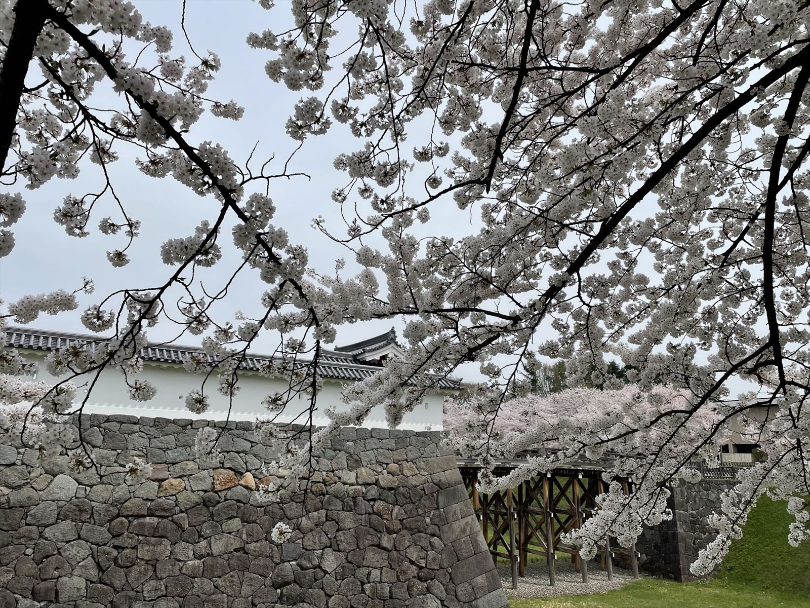 関東はもう桜は散ってしまいましたが、山形は見頃を迎えていました。山形県内でも人気のお花見スポットが霞城公園です。山形駅から徒歩10分程度で山形城跡地の霞城公園があります。 山形城は三の丸まである平城でしたが、戦前 山形歩兵第三十二連隊が設置された際、本丸は埋め立てられて整地され、二の丸の東大手門と北門枡形囲いの石垣や土塁は撤去されたそうです。しかし現在は 「山形城復元計画」に沿って、最初東大手門が 、次に 本丸の正門に当たる一文字門に架かる大手橋が復元され ています。水戸もそうでしたが、お城跡って余程しっかり建物が残ってないと、普通の宅地みたいに扱われてしまうのですね。でも最近は歴史的な価値が認められて、復元が行われたり、公園として保存されたりしているようです。