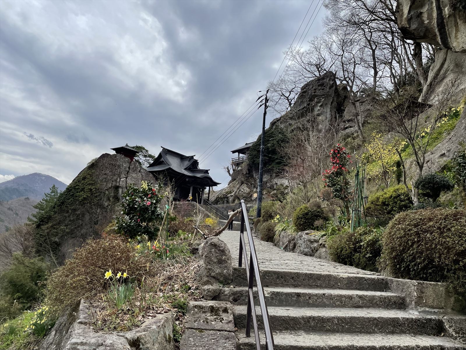 階段を上っていくと、途中から道が分かれます。一方は本堂へ。そして一方は、あの有名な「五大堂」へと続きます。
