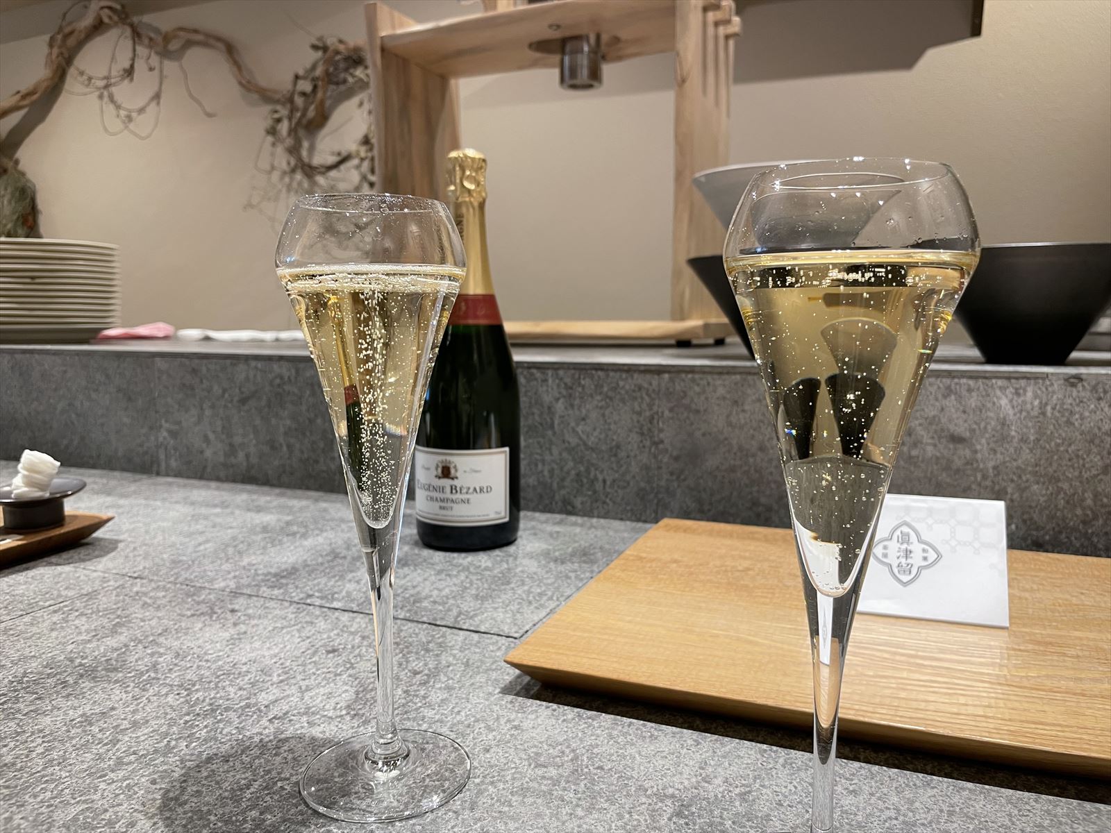 こちらは飲み物込のお値段ですが、プラスして別の飲み物に変えることができます。+1,000円で贅沢にシャンパーニュにしました。