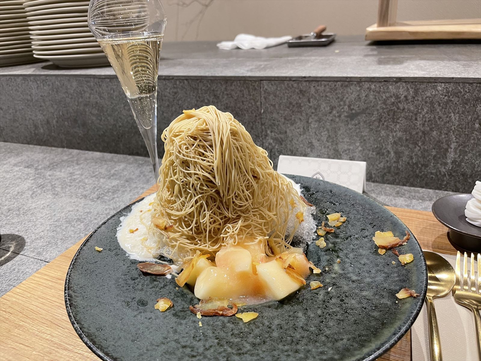「モンブラン桃氷」(2,500円税別)桃が美味しい!かき氷とアイスクリームと和栗、さっぱりと食べられます。