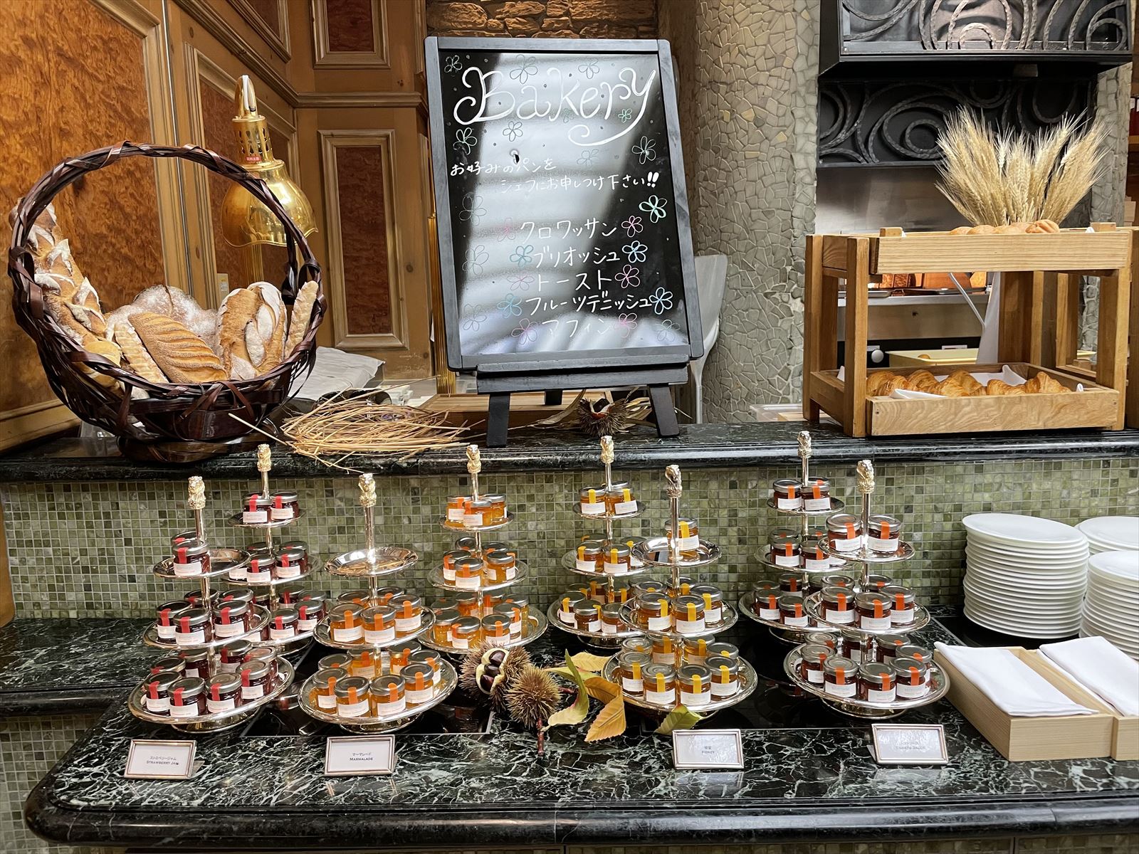 リッツカールトン大阪は、ゴールド会員特典で午後2時までのレイトチェックアウトができますが、そこは庶民、観光する時間がなくなると通常の11時にチェックアウトをします。せっかくいいホテルに泊まったらできるだけ長い時間滞在するのが大人の旅でしょうが、まだまだ庶民根性が抜けません。実はあんな立派なバスタブがあるのに、シャワーしか浴びてないんです。バスタブにバスソルト(3種類も用意されてました)を入れて、ゆっくりバスタイムを楽しむつもりが・・・朝ごはん、あまりの居心地のよさにゆっくりし過ぎました。