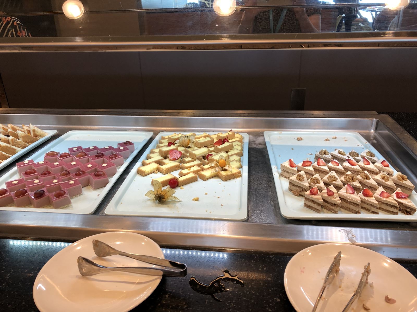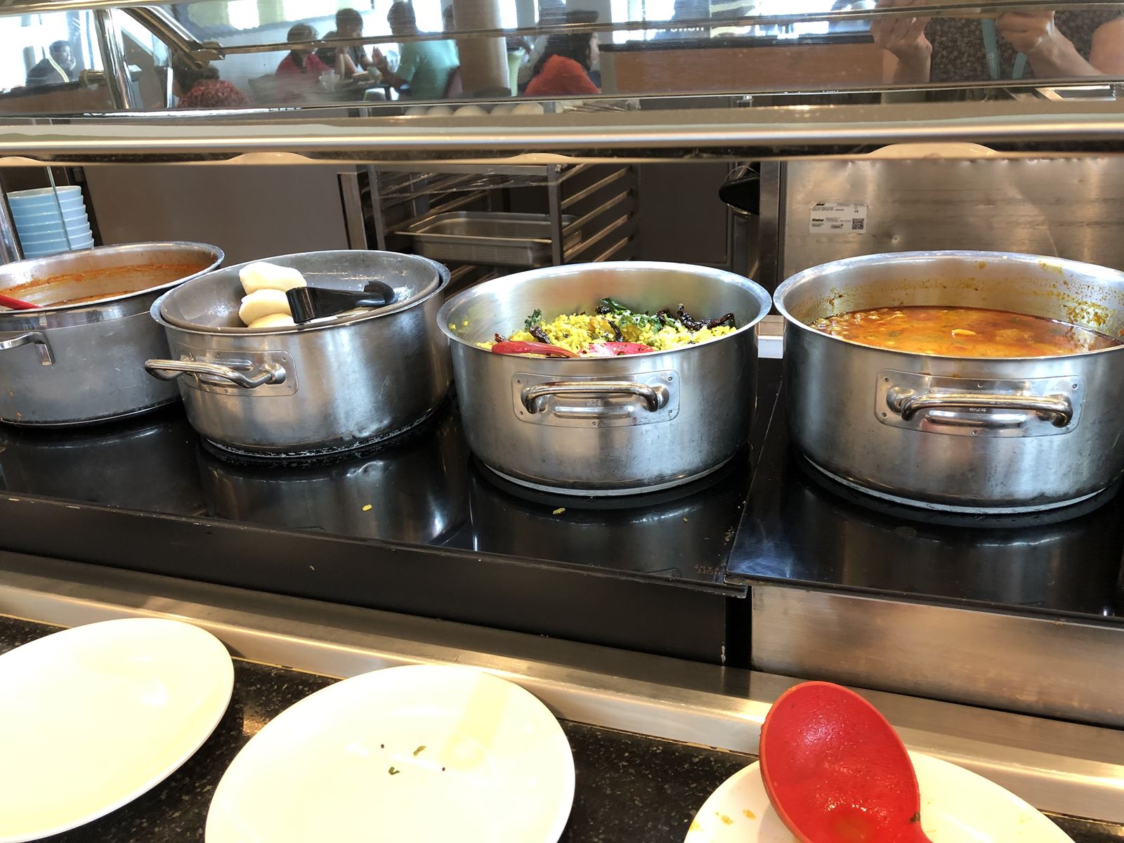 遅い時間だったので、席が空いていてゆっくり食事ができました。海を見ながらの食事はクルーズならではです。この日は、インド料理ビュッフェのエリアで食事をしました。