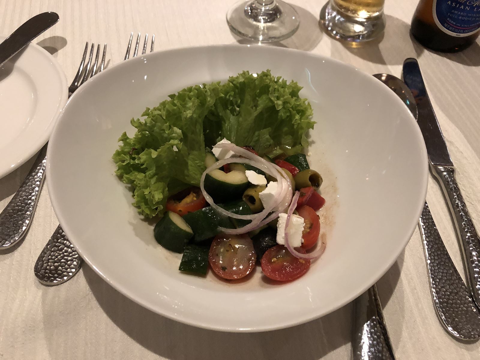 メニューは、サラダを2種類から、メインを3種類から選ぶことができます。飲み物代金は別料金で、アクセスカードで処理され下船時にまとめて払います。