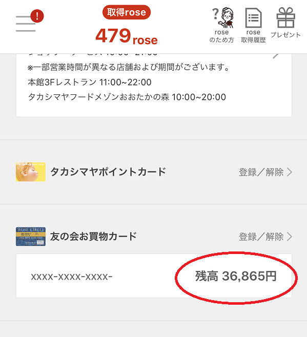 ・お買い物カードの残額は、レシートに印字されますが、スマホにタカシマヤアプリを入れておけばすぐ見ることができます。タカシマヤアプリについてはこちらで紹介しています。↓