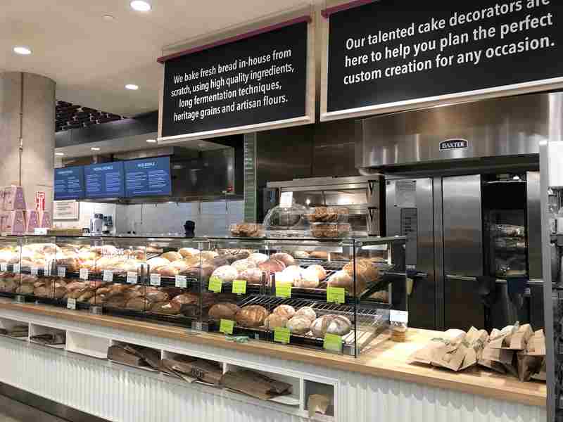 ・ホールフーズでは、肉の種類が多いだけでなく、魚も、切り身だけでなく1匹で売っているのもあります。また、ベーカリーのコーナーも充実していて、ハードタイプのパンを購入しました。噛みしめると味のある美味しいパンでした。しかし、柔らかいパンに慣れた日本人には、外側の部分が硬すぎました。