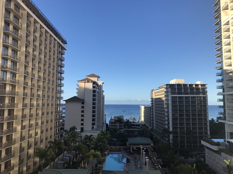 お部屋はアロハタワーの1102という11階の1番奥の部屋でした。(海から1番遠い部屋)まあ、タダで泊まっているんだから11階というだけでマシかという気持ちでした。