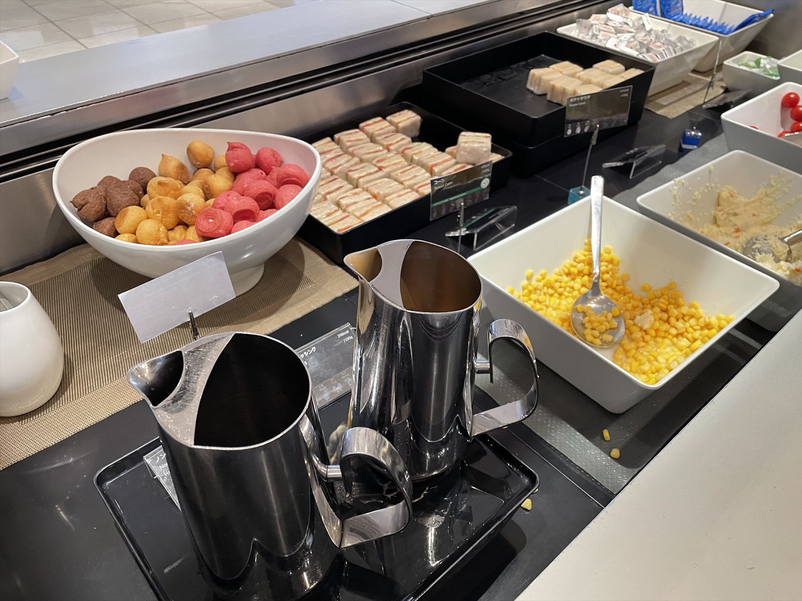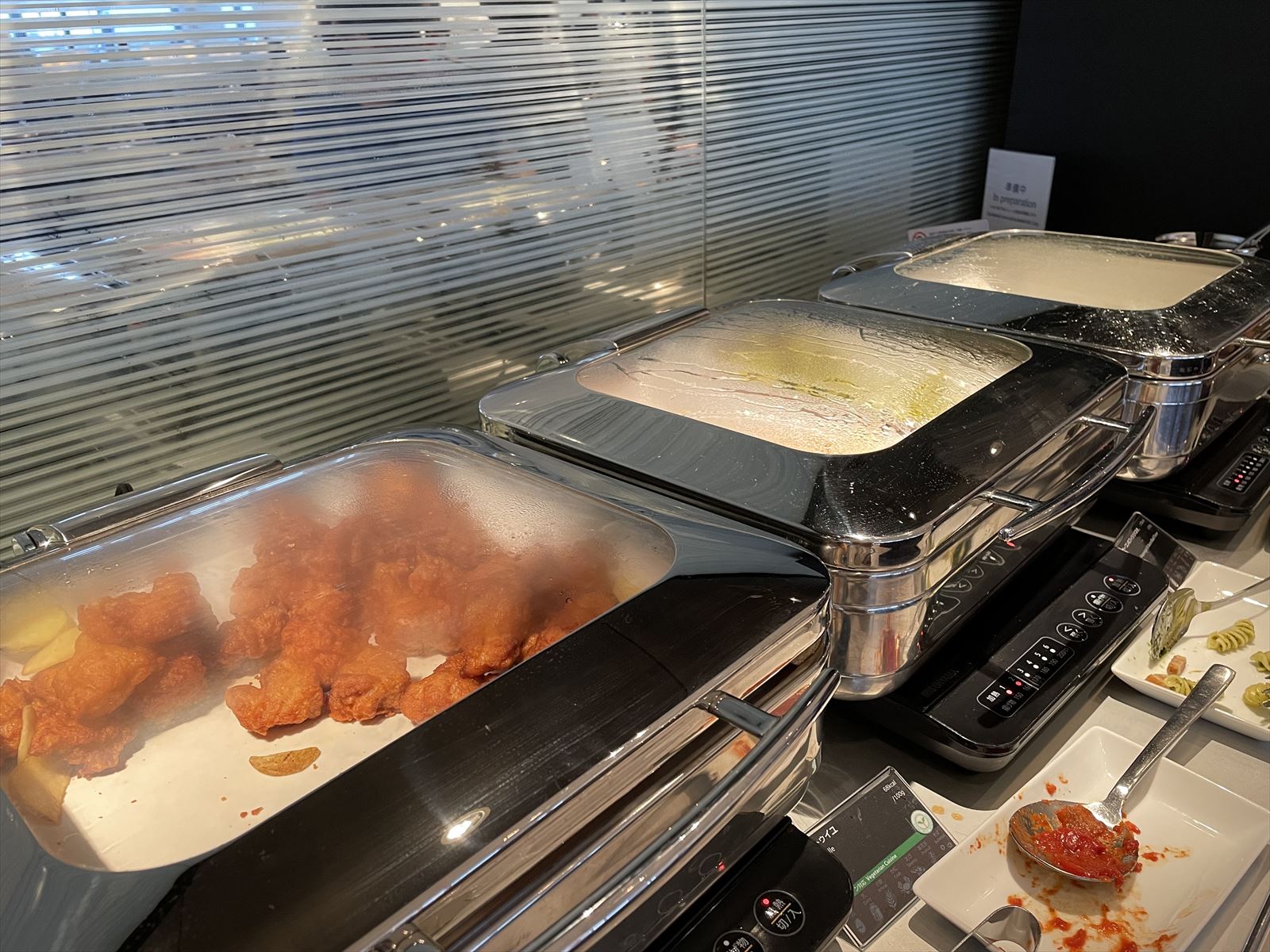 出国手続きが終われば、毎回楽しみにしているラウンジへ。毎回それほど変わったメニューはありませんが、ちょうど夕食時なのでここで小腹を満たします。