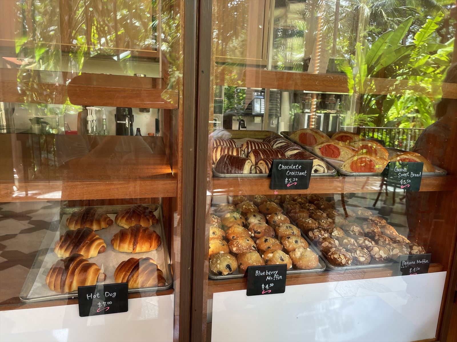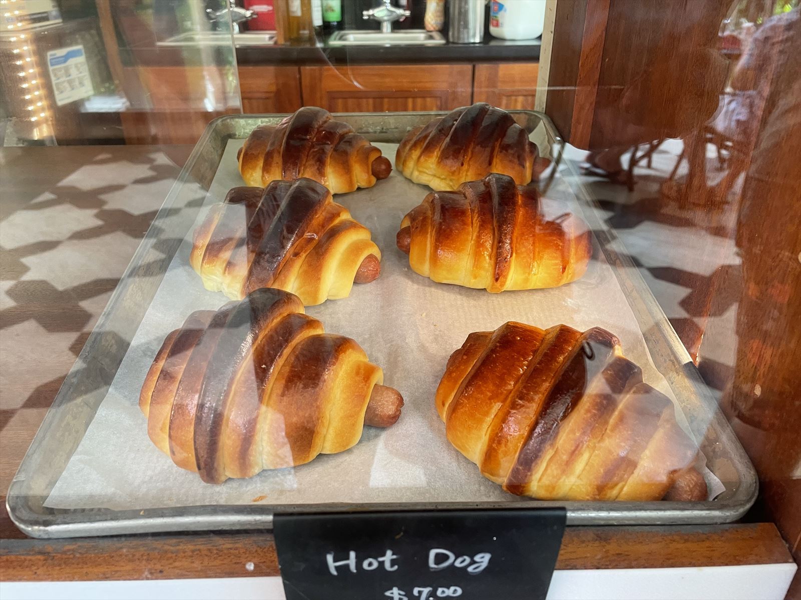 お味はというと、チョコレートクロワッサンはとても美味しかったです。表面までチョコの味があり、クロワッサン特有のパリパリ感と中のチョコレートの甘すぎない味が好みでした。一方、オットが選んだホットドックは、パンに甘い味がついていて、不味くはないけれど普通のパンが好みです。クロワッサンみたいな形をしていますが、普通のフワフワしたパンです。