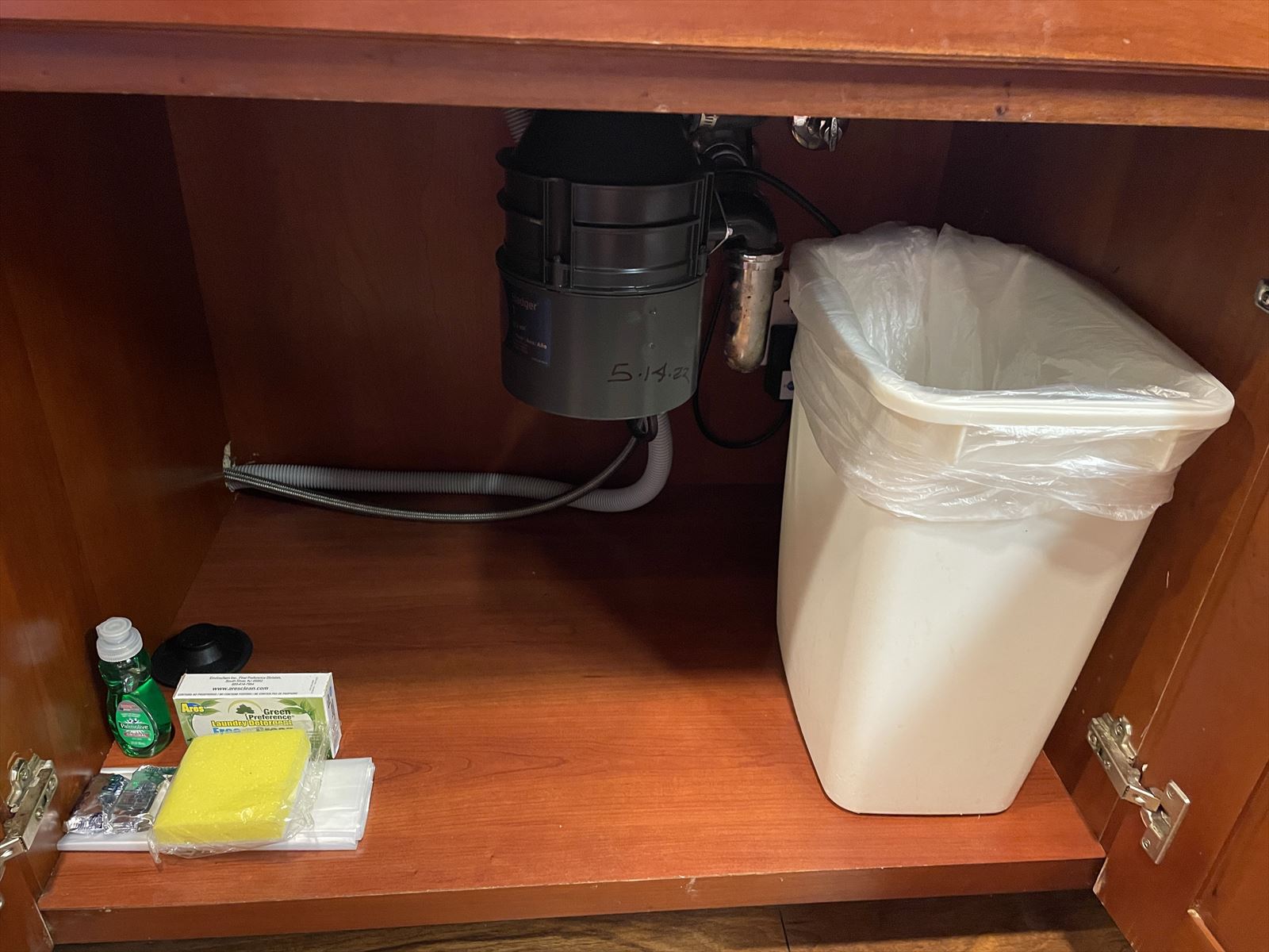 食器は4人分ずつ。洗剤やスポンジ、ゴミ袋の予備もあります。