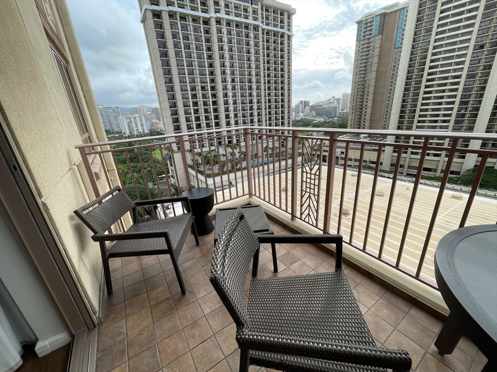 我が家の持ってるグランドワイキキアンのお部屋は、アラモアナ側シティビューです。海はラナイからイリカイホテルとワイキキアンの建物の間からハーバーが見えるだけです。ところが今回は初めて反対側のお部屋になりました。17階とちょっと低い階ですがビーチが見えるお部屋にちょっとウキウキしました。