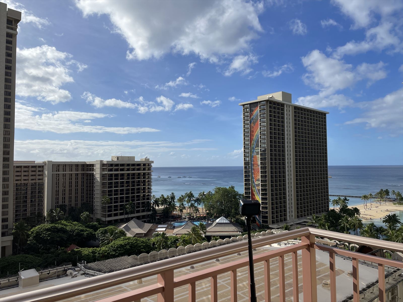 我が家の持ってるグランドワイキキアンのお部屋は、アラモアナ側シティビューです。海はラナイからイリカイホテルとワイキキアンの建物の間からハーバーが見えるだけです。ところが今回は初めて反対側のお部屋になりました。17階とちょっと低い階ですがビーチが見えるお部屋にちょっとウキウキしました。