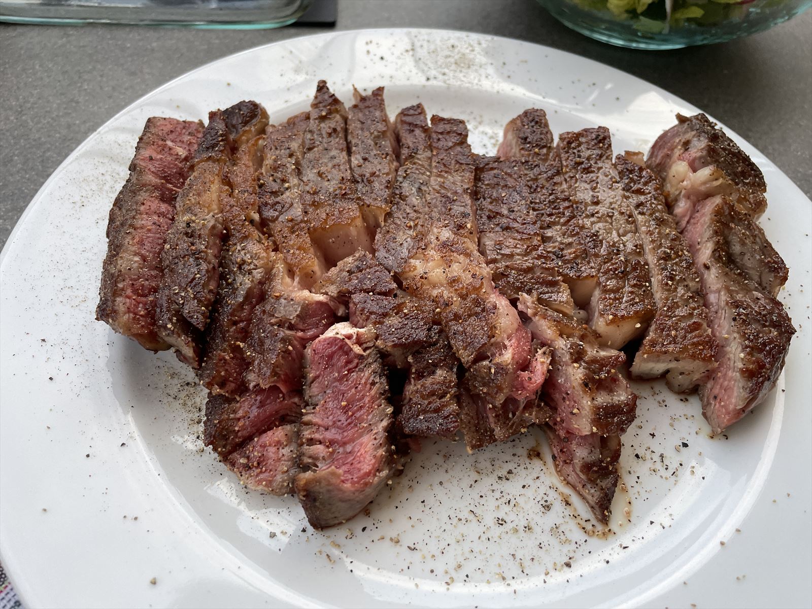 この日は手早く準備ができるステーキにしました。初日に間違って買ってしまったお肉よりワンランク上のステーキ肉を買ってきました。