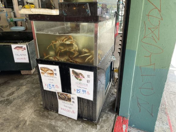 ハワイで有名なロブスター。フードランドやフードパントリーでも頭を取った状態のロブスターが売られています。でもこれだとちょっと見栄えがしない。そこで今回はチャイナタウンで生きたロブスターを買ってこようということになりました。