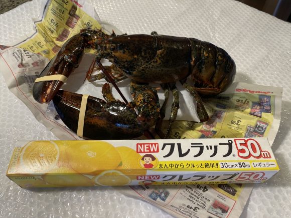 お店ではロブスターを新聞紙とプチプチで包み、中に保冷剤も入れてくれました。もちろんツマは保冷バック持参です。