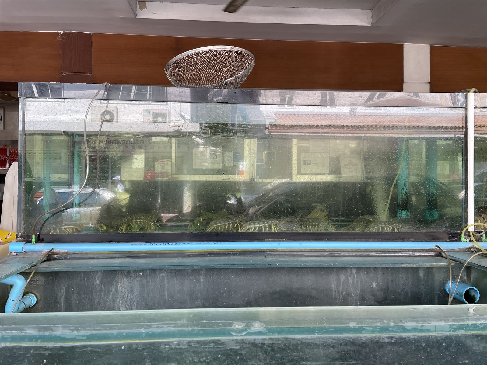 お店の外には水槽が並んでいいて、魚やエビが入ってました。