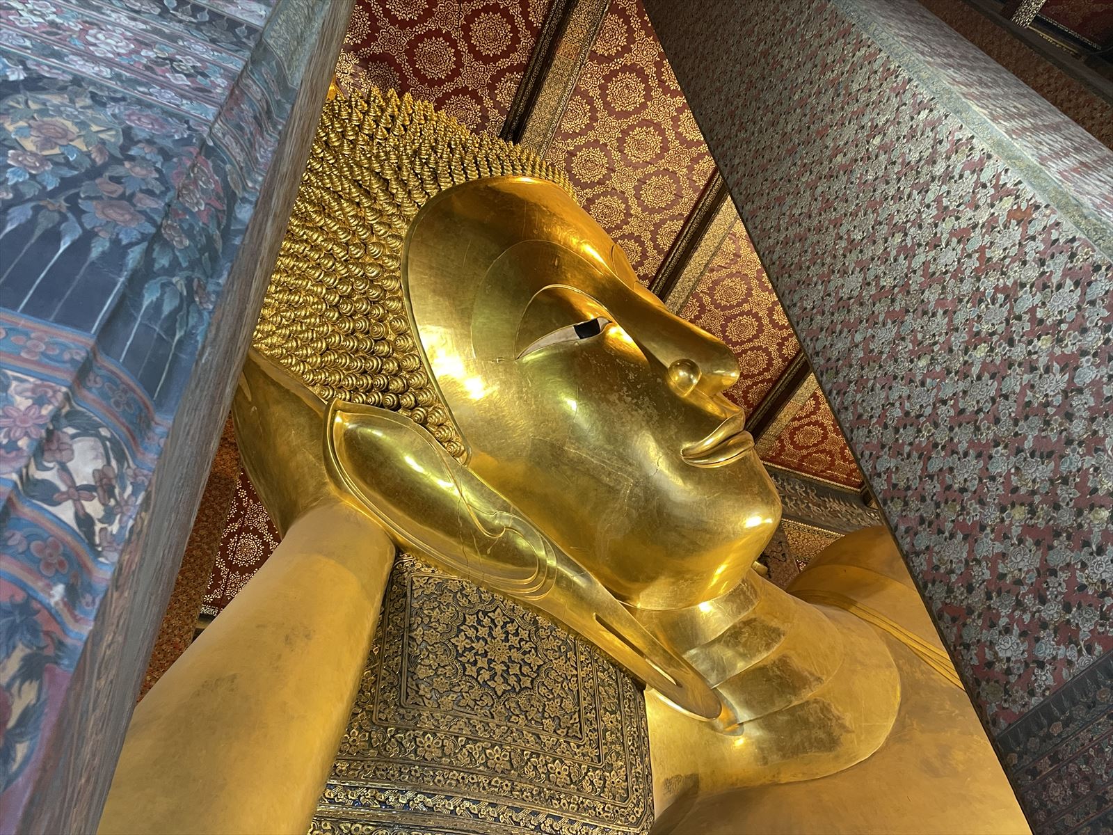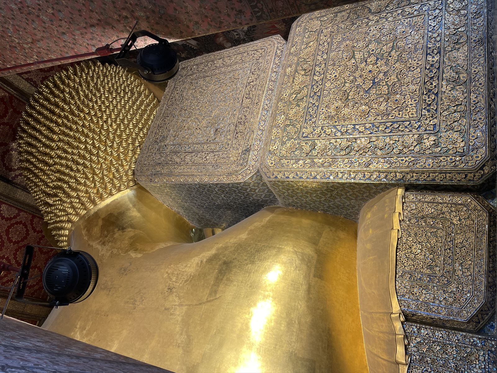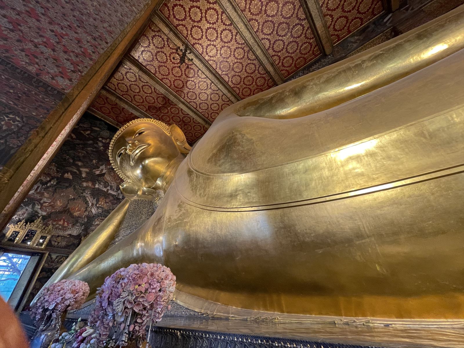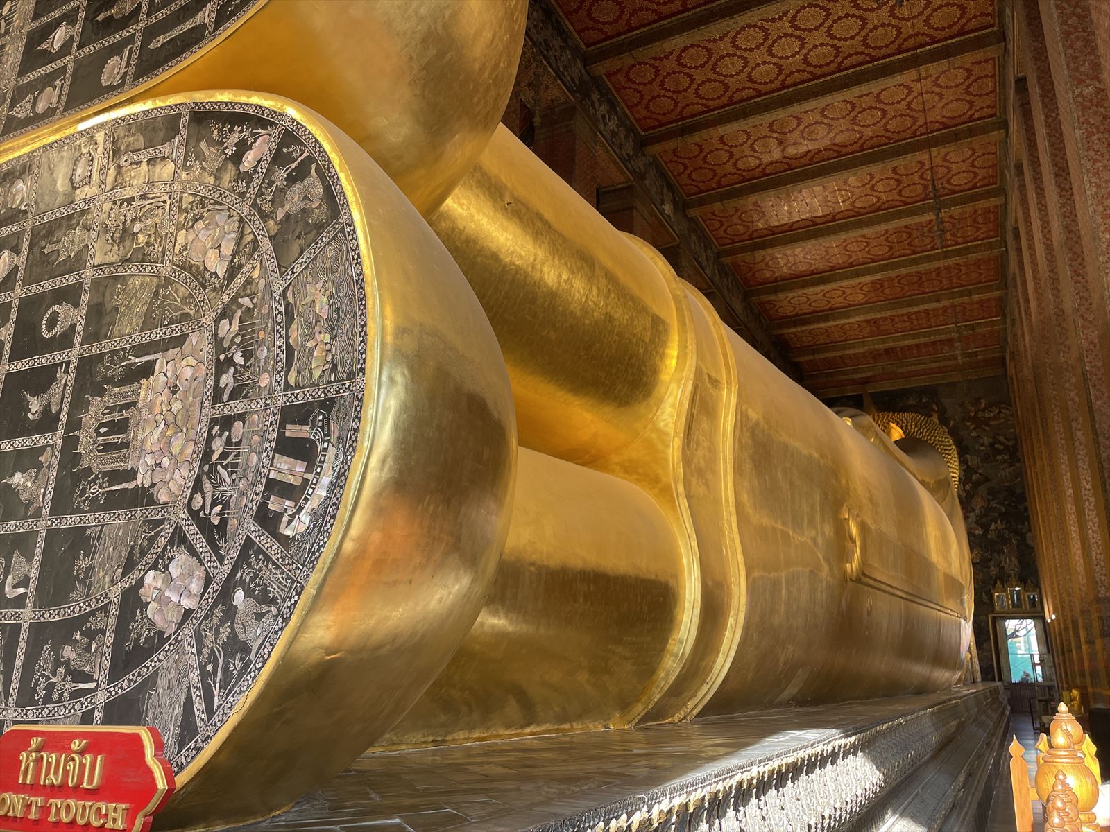ワット・ポーと言えば、全長46mの金色の涅槃像です。今回の旅行の1番の目的はこの涅槃像にお参りすることでした。こちらの拝観料は一人200Bでした。