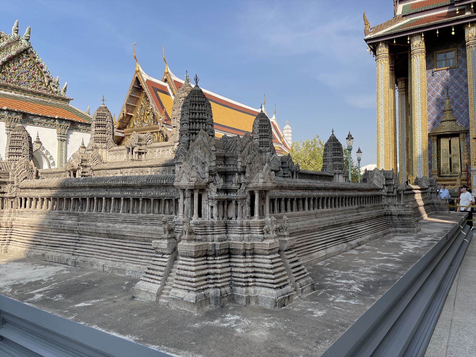 金色でひときわ目立つ仏塔は、内部にシャカの遺骨、仏舎利が納められているとのこと。ラマ四世がアユタヤのワット・プラ・シー・サンペットをまねて建てたものだそうです。また左の写真はアンコールワットの模型です。19世紀末に造られたそうですが、その頃はフランス人の冒険家アンリ・ムオによって遺跡が再発見され、フランスはアンコール遺跡群の周辺を統治し、遺跡の研究や修復を進めたそうです。遺跡を見て感銘し、模型を作るなんて財力があってのことでしょうね。