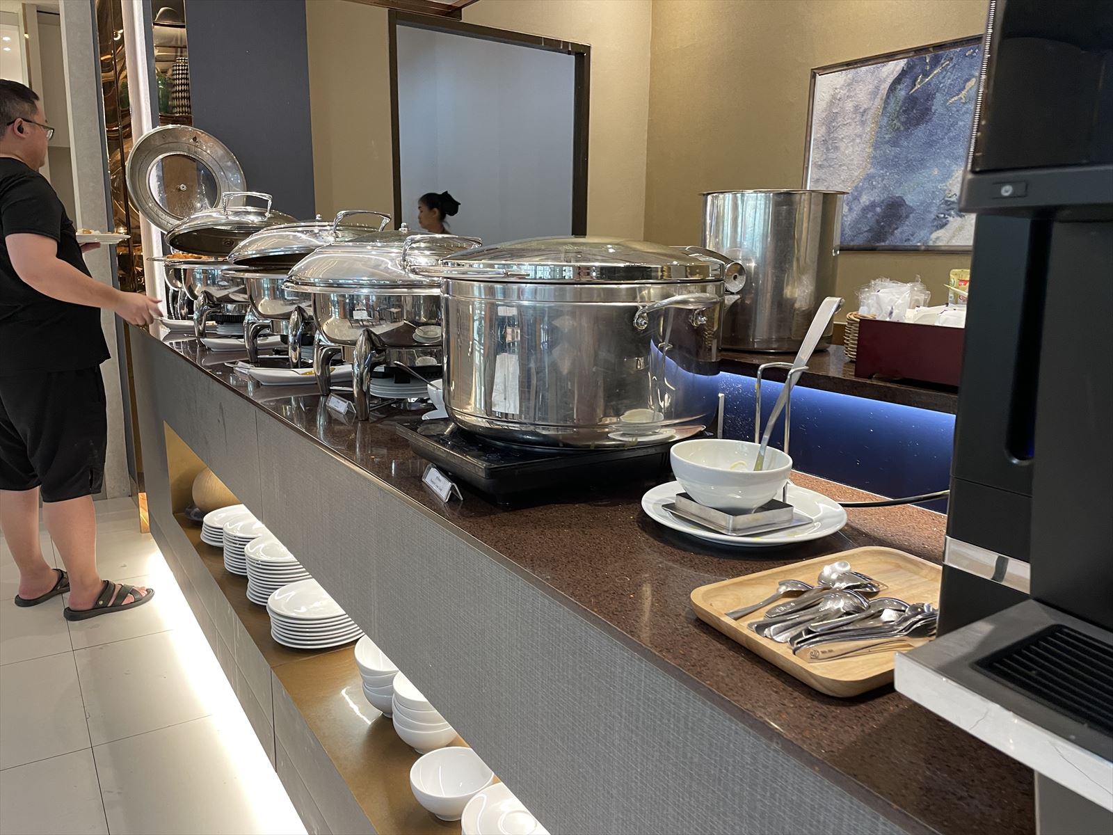 ハノイでの乗り継ぎは3時間半。機内食でお腹はいっぱいだけど、ベトナム航空のお膝元のラウンジは見ておかないと。正直ホーチミンのラウンジが小さかったので期待はしていなかったのですが・・・行ってよかったです。でもどうせ行くならお腹を空かせて行きたかった。それくらい料理が充実していました。