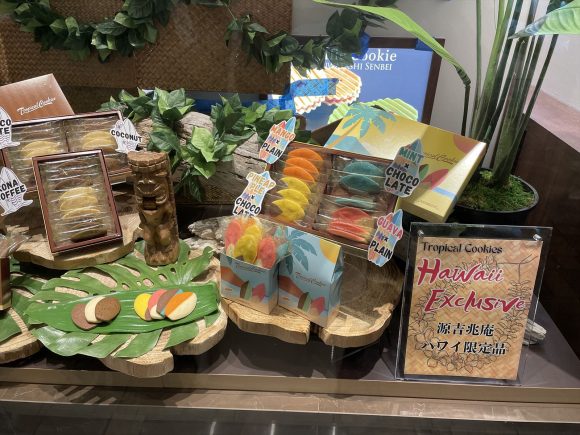最初は源吉兆庵に。源吉兆庵は和菓子のお店で日本の有名デパートには必ず出店している有名店です。このお店がアラモアナセンターにもあります。和菓子は当然ですがハワイ限定のかわいいクッキーがあると、友達からリクエストがあり市場調査に行ってきました。
