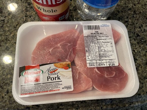 ハワイでも豚肉は安いです。これは「Tender」と書いてあるので、日本でいう「ヒレ肉」です。2枚で5ドル、約800円でした。赤身で柔らかいのが特徴のヒレ肉は日本では棒状で販売されているので、ちょっと見にはヒレ肉とは思いません。日本のヒレ肉より色が薄いせいか、味も淡泊な感じでした。