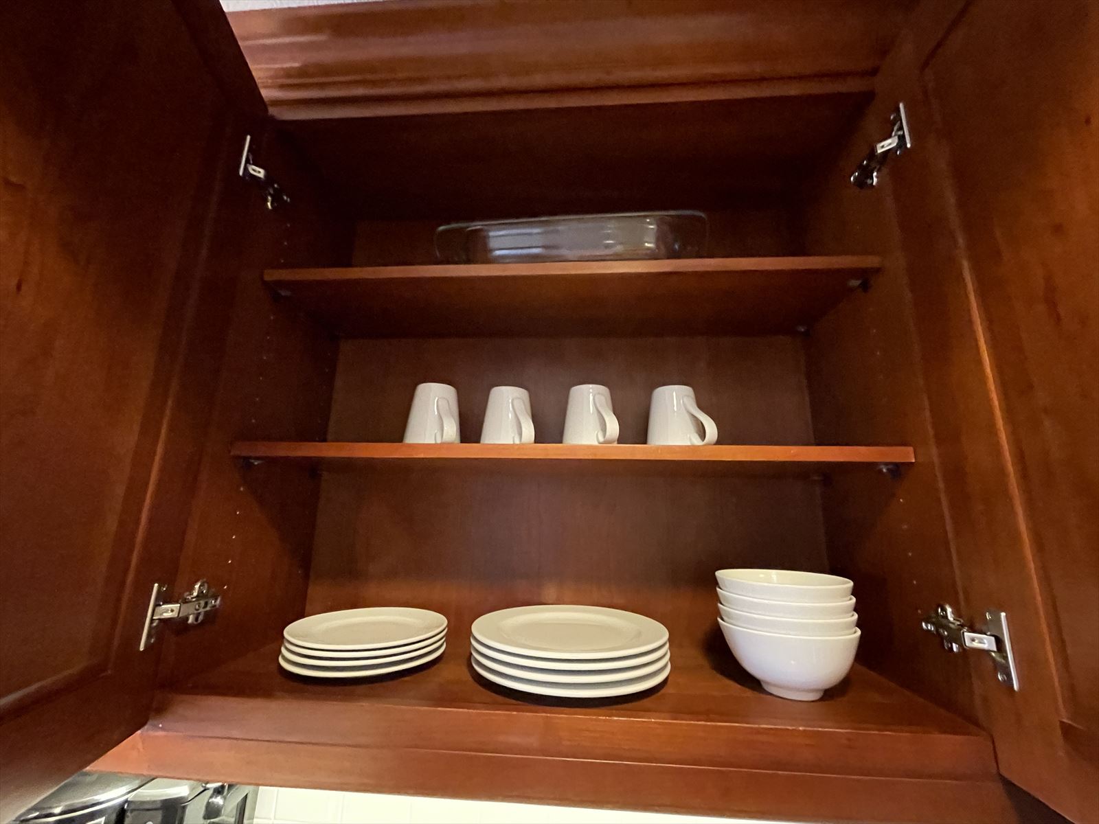 1BRですが、ソファーベットなので、この部屋は4人まで宿泊できます。食器類は4人分揃ってます。