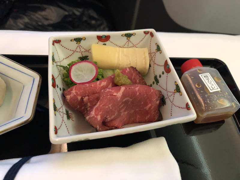 お料理は、一皿、一皿、吟味された素材と味付けでした。ローストビーフについている柚木ジュレが好みの味で、帰国後、ANAショッピングA-styleで探してみましたが該当商品は見つかりませんでした。